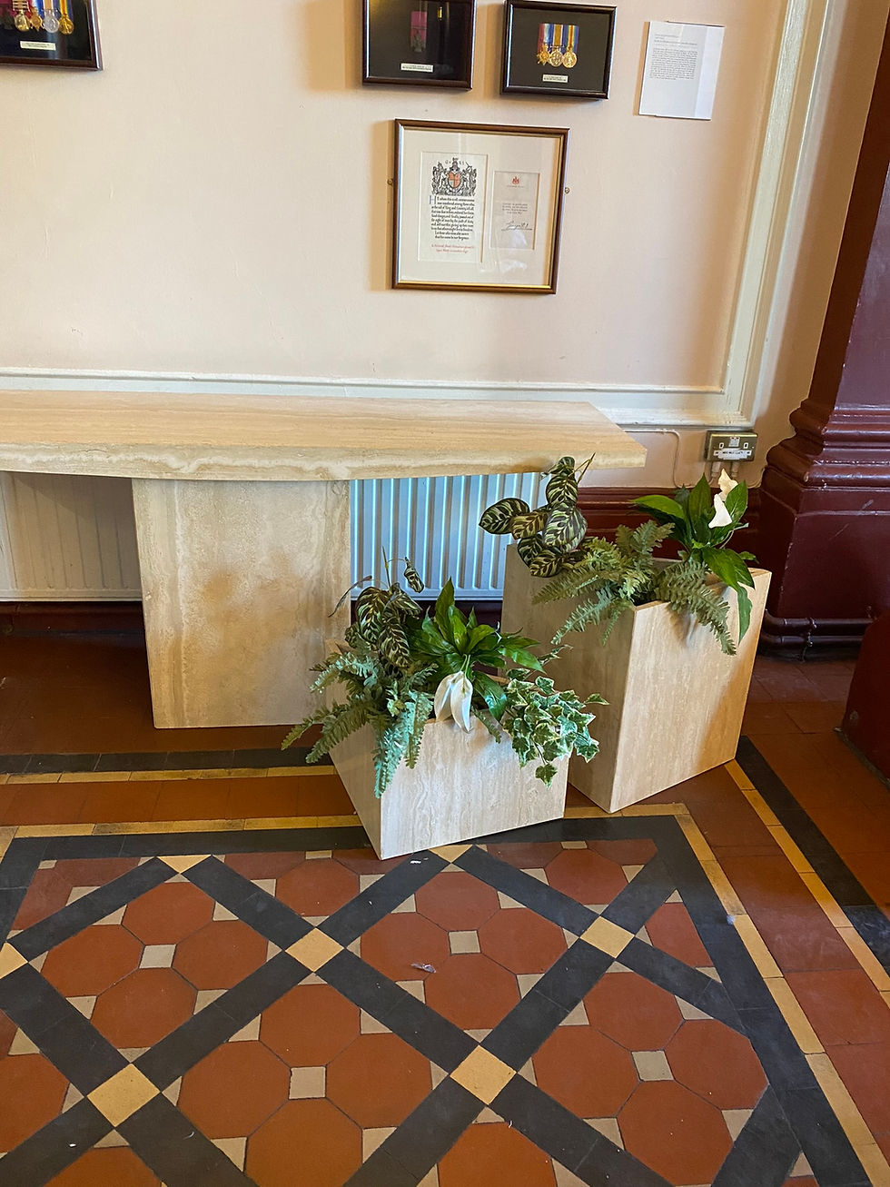 Pair of Triangular Travertine Planters, Italy, 1980s